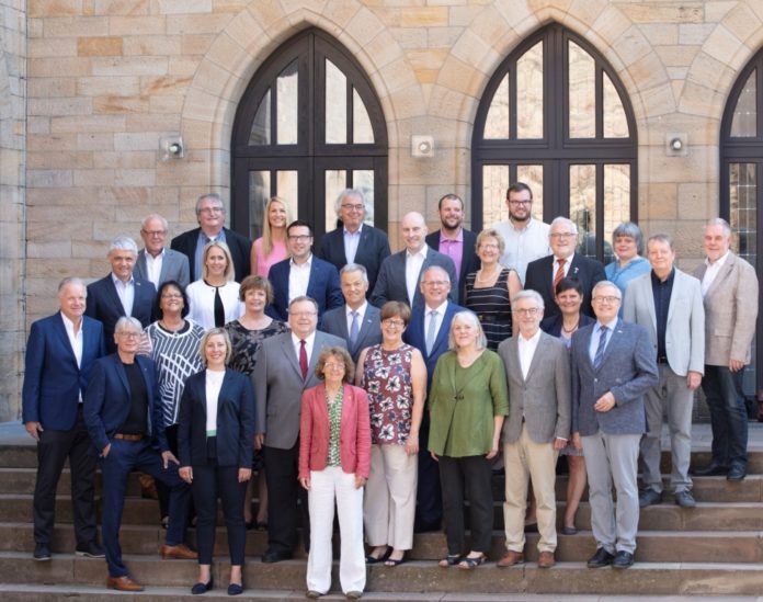 Die 29 Abgeordneten des pfälzischen Parlaments wählten in ihrer konstituierenden Sitzung auf dem Hambacher Schloss Theo Wieder (CDU) zum Vorsitzenden des Bezirkstags Pfalz und bestätigten ihn damit für weitere fünf Jahre im Amt; er erhielt 25 Ja- und eine Nein-Stimme bei drei Enthaltungen. Der 64-jährige ehemalige Frankenthaler Oberbürgermeister steht seit 2004 dem obersten Entscheidungsgremium des Bezirksverbands Pfalz vor, der Träger beziehungsweise Mitträger von über 20 bedeutsamen Institutionen in der Region ist. Der Kaiserslauterer Oberbürgermeister Dr. Klaus Weichel (SPD) und die ehemalige Landtagsabgeordnete Ruth Ratter (Bündnis 90/Die Grünen) aus Deidesheim wurden vom Regionalparlament zu seinem ersten Stellvertreter sowie zu seiner zweiten Stellvertreterin gewählt. In der 17. Wahlperiode sind die CDU mit acht Sitzen, die SPD mit sieben Sitzen, die Grünen mit fünf Sitzen, die AfD und die FWG mit je drei Sitzen, die FDP mit zwei Sitzen und die Linke mit einem Sitz im Bezirkstag Pfalz vertreten. Von den 29 Mitgliedern sind – wie schon beim letzten Mal – elf weiblich, was einem Anteil von 39 Prozent entspricht. 14 Mandatsträgerinnen und -träger gelangen erstmals beziehungsweise nach einer Unterbrechung wieder in den Bezirkstag Pfalz. CDU, SPD und Grüne haben kürzlich eine Koalition mit einer tragfähigen Mehrheit von 20 Sitzen vereinbart. Ihr gehören das jüngste und neue Bezirkstagsmitglied, Felix Schmidt von den Grünen (Jahrgang 1990), und der älteste Vertreter im Pfälzer Parlament, Manfred Schwarz von der CDU (Jahrgang 1945), an; dieser engagiert sich seit 1999 für die Region und hatte in der zurückliegenden Wahlperiode Verantwortung als zweiter Bezirkstagsvize übernommen, wofür ihm Wieder herzlich dankte.