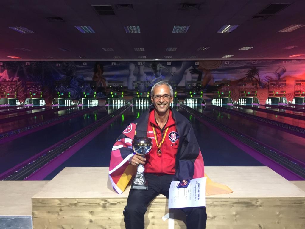 Erneut können die Kegler der TSG Kaiserslautern jubeln: Bei den Deutschen Meisterschaften der Senioren am 29. & 30.06. in Ludwigshafen krönte sich Christian Engel bei den Senioren A (Ü50) zum Deutschen Meister 2019! Im Vorlauf mit 599 Kegeln noch auf dem 3. Rang, übernahm er nach 2. Satz des Finaldurchgangs mit 173 Kegeln die Führung in der Gesamtwertung und hielt diese bis zum letzten Wurf. 608 im Finale, 1207 Kegel in der Gesamtwertung bedeuteten die Goldmedaille vor Thomas Schmidt (1169 Kegel, SKV Weiden, Bayern) und Lars Parpart (1168 Kegel, SK Markranstädt, Sachsen).