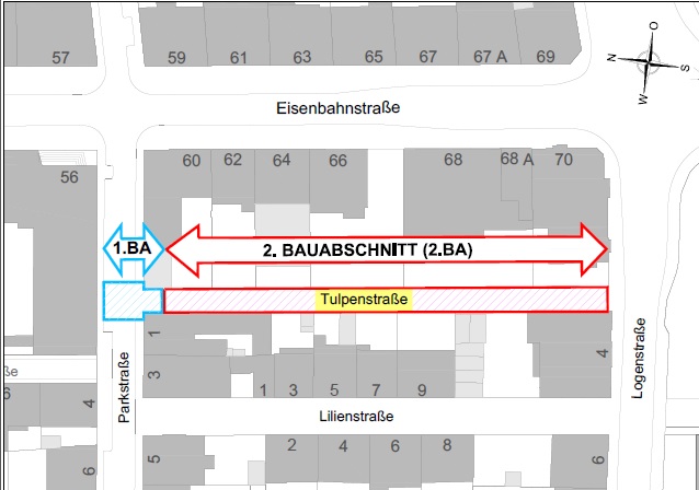 Ab voraussichtlich dem 15. Juli bis etwa Mitte September 2019 wird in der Tulpenstraße durch die Stadtentwässerung Kaiserslautern ein neuer Regenwasserkanal gebaut. Die Parkstraße (1. Bauabschnitt) wird in den ersten beiden Wochen ab Baubeginn voll gesperrt. Die Tulpenstraße (2. Bauabschnitt) wird abschnittsweise voll gesperrt. Fußgängerverkehr ist hiervon nicht betroffen. Die Anwohner werden zusätzlich informiert.