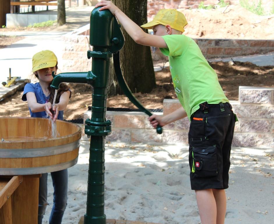 Die neue Wasserspielanlage wurden bereits eingeweiht. Die Kinder des Ferienprogramms „Abenteuer in der Zoowelt“, welche von Dienstag bis Donnerstag den Zoo, nicht nur am Tag, sondern auch in der Nacht erleben dürfen, haben die Anlage auf Herz und Nieren getestet und für sehr gut befunden.