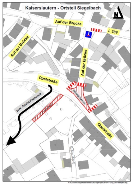 Zur Verbesserung der Entwässerungssituation im Ortsteil Siegelbach hat die Stadtentwässerung Kaiserslautern AöR unter dem zentral gelegenen Parkplatz in der Ortsmitte ein Regenrückhalte-becken gebaut. Für die abschließenden Anschlussarbeiten an die Kanalisation ist ab 29.Juli 2019 bis voraussichtlich 9. August 2019 eine halbseitige Sperrung der Opelstraße im Ortskern erforder-lich. Die Verkehrsregelung erfolgt über eine mobile Ampelanlage. Notwendige Umleitungen wer-den ausgeschildert.