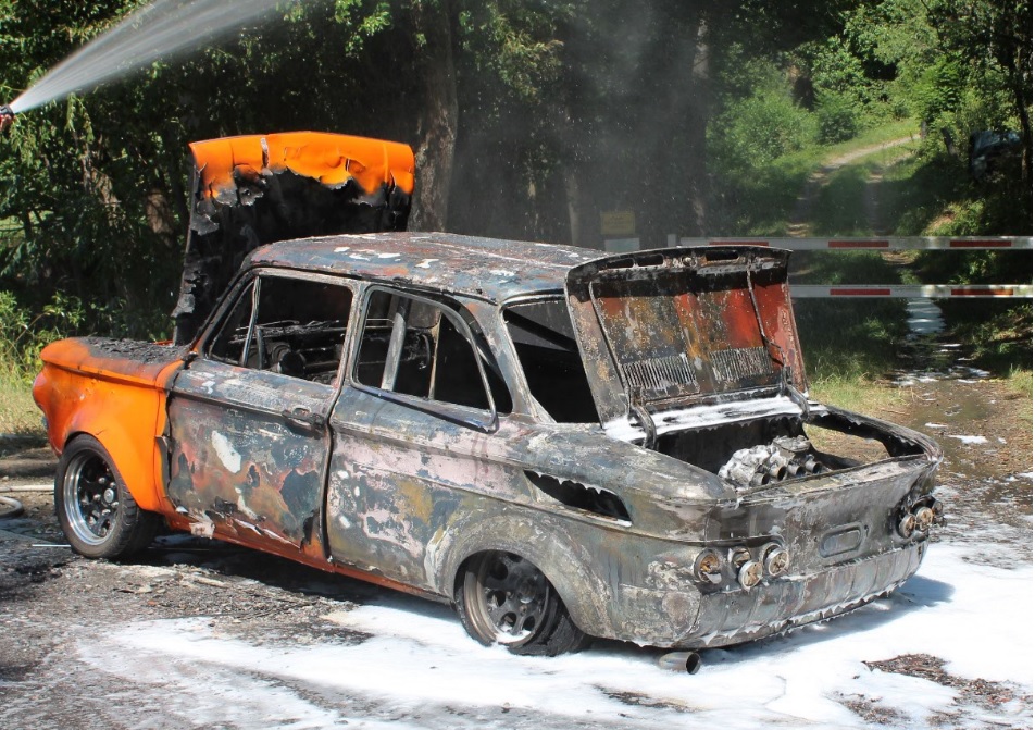 Am Mittwoch um die Mittagszeit fing ein NSU Prinz auf der Landstraße 386 aufgrund eines technischen Defekts plötzlich Feuer. Zuvor war während der Fahrt Rauch aus dem Motorraum gekommen. Der Brand konnte durch die freiwillige Feuerwehr schnell gelöscht und ein Übergreifen auf ein angrenzendes Waldstück verhindert werden. Der PKW brannte komplett aus, der Sachschaden wird auf rund 10.000 Euro geschätzt. Personen wurden nicht verletzt.