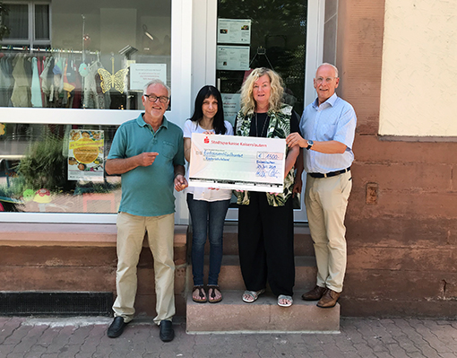 Die Stadtsparkasse Kaiserslautern unterstützt ein Lernpatenprojekt für Grundschulkinder des Deutschen Kinderschutzbundes. Karin Decker, stellvertretendes Vorstandsmitglied der Sparkasse überreichte Lothar Bihy und Michael Krauss und Projektleiterin Salma Abuzaina einen Scheck in Höhe von 1 500 Euro.