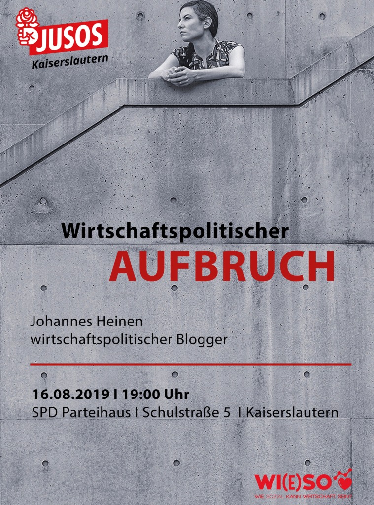 Er fordert eine „wirtschaftspolitische Zeitenwende“, die wir Jusos Kaiserslautern mit ihm und allen Interessierten diskutieren wollen. Dazu braucht ihr keine Vorkenntnisse über Wirtschaftspolitik. Die Veranstaltung möchte die wichtigsten Zusammenhänge erklären.