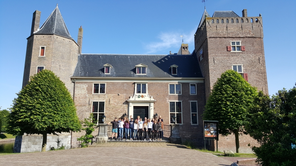 Bu: Ausgangspunkt für Amsterdam: ein Teil der Reisegruppe vor der Jugendherberge in Heemskerk
