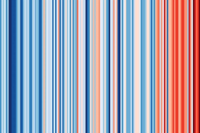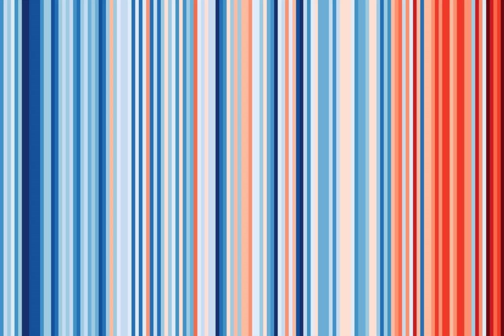 Die „warming stripes“ nach Ed Hawkins (http://www.climate-lab-book.ac.uk/) sind ein Sinn-Bild für den Klimawandel. Sie zeigen in der anhängenden Darstellung die mittlere Lufttemperatur in Rheinland-Pfalz (1881 bis 2018). Besorgniserregend sind die Messungen innerhalb der letzten zwei Jahrzehnte. Die roten Streifen symbolisieren die wärmsten jemals gemessenen Jahre, die alle in unserer jüngsten Vergangenheit liegen.