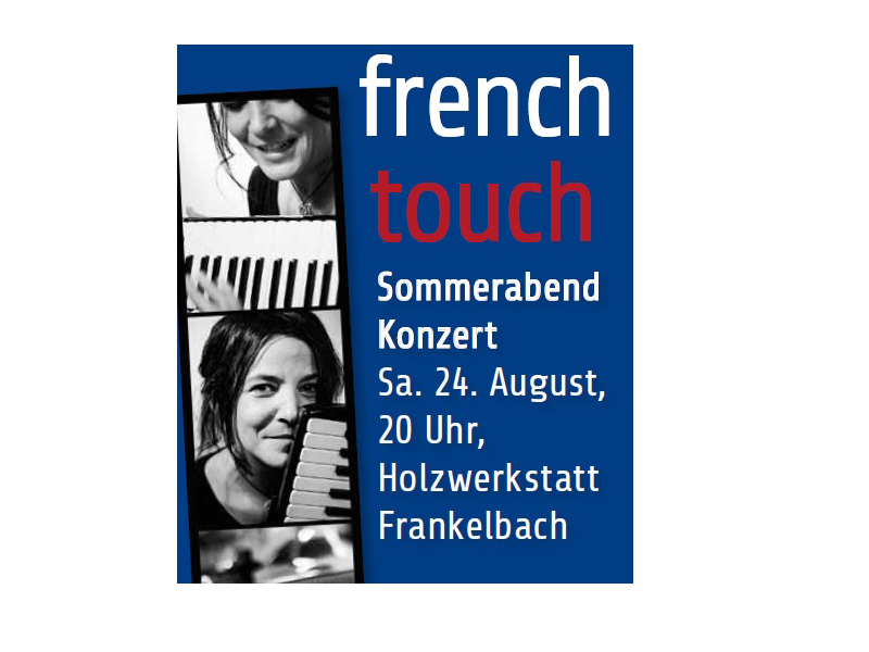 „french touch“ spielt: Akkordeonmusik – französische Musettes, Tangos, Weltmusik mit Ausflügen in den Jazz, facettenreich und vielschichtig über einer melancholischen Grundstimmung. Das reizvolle Aufeinandertreffen von klassischer Soloinstrumentalistin und banderfahrenen Jazzmusikern erzeugt einen musikalischen Spannungsbogen, der nicht die Klischees nationaler Weinseligkeit bedient, sondern mit Ausdruck und Virtuosität Herz und Geist gleichermaßen berührt.