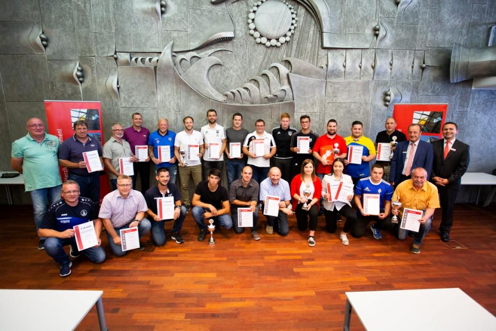 Dass man auch mit einer Fairness-Einstellung sportlich Erfolg haben kann, haben in der Region mehrere Fußballmannschaften aus den Einstiegs-Ligen bewiesen. Im abgelaufenen Sportjahr 2018/2019 traten gut zwei Dutzend Sportteams so nachhaltig fair hervor, sodass sie nun von den Kreissparkassen Kaiserslautern und Kusel für ihre besonders sportlich-faire Saison ausgezeichnet wurden. „Fairness bedeutet gegenseitigen Respekt und zwar auf und neben dem Platz“, sagten Benedikt Glas, stellvertretender Marketingleiter der Kreissparkasse Kaiserslautern und Roland Sander, Marketingleiter der Kreissparkasse Kusel. Sie hatten mit Unterstützung von Dominik Ohnesorg und Andrea Zens von den Marketingabteilungen der Kreissparkassen Kaiserslautern bzw. Kusel die Preisverleihung vorbereitet. Rainer Pfaff, Kreisvorsitzender beim Südwestdeutschen Fußballverband, erinnerte daran, dass es auch eine Aufgabe der Vereine sei, „gerade die Jugend an das Gemeinschaftliche heranzuführen“. Das müssten Erwachsene immer wieder vorleben, denn „wir sind eine buntgemischte Gesellschaft“, so Pfaff, der einen jüngst geschehenen Vorfall schilderte, bei dem gegen einen dunkelhäutigen Feldspieler offenbar rassistische Anwürfe laut wurden. Mitspieler seien sofort eingeschritten und haben die Situation beruhigt, so Pfaff. Fair-Play sei eine „Sache des Respekts – dem einzelnen und der Gruppe gegenüber“, bekräftigte Pfaff.