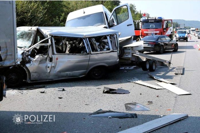 Das Unglück nahm gegen 11 Uhr seinen Lauf, als ein Lkw-Fahrer, der auf der rechten Spur auf dem Weg in Richtung Mannheim war, verkehrsbedingt bis zum Stillstand abbremsen musste. Der Fahrer des nachfolgenden Kleinbusses samt Anhänger bremste ebenfalls. Von hinten näherte sich in diesem Moment ein weiterer Transporter, dessen Fahrer die Situation vor ihm aus noch nicht geklärten Gründen nicht erkannte. Das Fahrzeug prallte mit voller Wucht auf den Anhänger des Kleinbus-Gespanns und schob dieses nach vorne auf den Auflieger des Sattelzugs.
