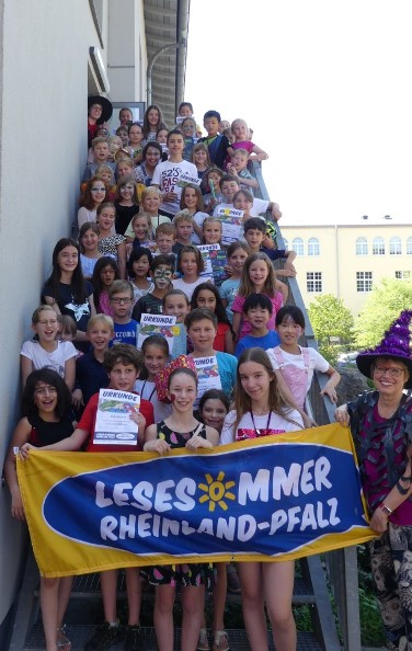 Glückliche Gesichter, spannende Erwartung: Zum Abschluss des Lesesommers 2019 wurden am Samstag, 31. August 112 Kinder und Jugendliche in den Veranstaltungsräumen der Meisterschule der Handwerker für ihre Leseleistung mit Preisen und Urkunden geehrt. Der Lesesommer Rheinland-Pfalz fand bereits zum vierten Mal in Kaiserslautern statt, durchgeführt und organisiert von den Mitarbeiter/Innen der Pfalzbibliothek des Bezirksverbandes Pfalz. Ermöglicht wurde die Aktion wieder durch zahlreiche Geld- und Sachspenden und Leihgaben. Insgesamt wurden 1.400 Bücher und damit auch 200.000 Seiten geschmökert. Die Prüfung, ob das Buch wirklich gelesen wurde, musste mindestens dreimal bestanden werden. Kein Problem für die meisten Teilnehmer/innen, die sehr viel mehr lasen als vorgegeben war. Den freiwilligen Helfern, die über den Sommer die Interviews abhielten, dürften noch länger die Ohren rauchen. Geehrt wurden sie am Festtag vom Stellvertretenden Bezirkstagsvorsitzenden Dr. Klaus Weichel, der den Helfern seinen Dank aussprach und eine kleine Aufmerksamkeit überreichte. In seiner Rede lobte er das Team der Pfalzbibliothek für die Bereitschaft den Lesesommer durchzuführen und übergab der Organisatorin Tina Jahnert ein kleines Präsent.