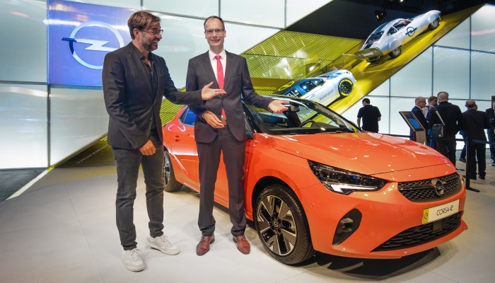 Opel CEO Michael Lohscheller hat heute das „OPELHAUS 120“ auf der Internationalen Automobil-Ausstellung in Frankfurt (Publikumstage 12. bis 22. September) eröffnet – gemeinsam mit Überraschungsgast und Opel-Markenbotschafter Jürgen Klopp. Der Messestand D31 in Halle 11.0 steht unter dem Motto „Opel wird elektrisch!“. Vor den Journalisten präsentierte der Opel-Chef im lockeren Gespräch mit Champions League-Sieger Klopp Breaking News rund um die E‑Offensive bei leichten Nutzfahrzeugen (LCV) sowie fünf aufsehenerregende Weltpremieren: Der hocheffiziente neue Opel Corsa, der batterie-elektrische Corsa-e und der Corsa-e Rally geben in Frankfurt ebenso ihr Debüt wie der erste Plug-in-Hybrid von Opel, der allradgetriebene Grandland X Hybrid4 mit 221 kW/300 PS Systemleistung (Kraftstoffverbrauch gemäß WLTP1: 1,4-1,3 l/100 km, CO2-Emission 32-29 g/km, gemäß NEFZ2: 1,5 l/100 km, 35-34 g/km CO2; jeweils gewichtet, kombiniert; vorläufige Werte). Ebenfalls frisch am Start sind der neue Opel Astra-Fünftürer und Sports Tourer – mit fünf Antrieben unter 100 Gramm CO2 pro Kilometer und einem überragenden cW‑Wert von 0,26 der effizienteste Astra aller Zeiten. Außerdem zum ersten Mal vor deutschem Messepublikum: der ebenso geräumige wie komfortable Opel Zafira Life, der bis zu neun Personen Platz bietet und voller innovativer Technologien steckt. So wird er zum perfekten Familien- und VIP-Shuttle.