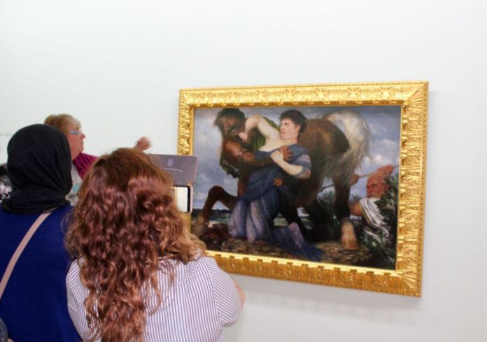 Nachdem alle Teilnehmerinnen ihr erstes Acrylbild fertig gestellt hatten, ging es zur Belohnung in die Pfalzgalerie Kaiserslautern. Begeistert lauschten die Frauen den Ausführungen von Ulrike Freitag, die sie durch die aktuelle Dauerausstellung der Pfalzgalerie führte.
