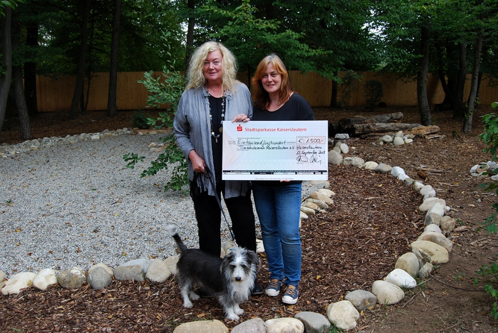 Eine Spende in Höhe von 1.500 Euro überreichte Karin Decker, stellvertretendes Vorstandsmitglied der Stadtsparkasse Kaiserslautern der Vorsitzenden des Tierschutzvereins Kaiserslautern Anne Knauber.
