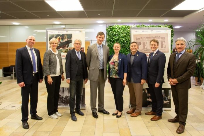Andrew Lewis vom Generalkonsulat der USA in Frankfurt betonte das gute und langjährige transatlantische Verhältnis, das sich in politischen, kulturellen und ideologischen Aspekten immer wieder zeige. „Dieses transatlantische Verhältnis hat sich tief in unser gemeinsames kulturelles Verständnis eingegraben“, so Lewis. Dabei hob er besonders die Arbeit der Atlantischen Akademie hervor, die diese Ausstellung organisiert hat und dabei vom Generalkonsulat und den Stadtwerken Kaiserslautern unterstützt wird. Einer der Grundsätze der USA sei es, die Sicherheit zu garantieren, weshalb die USA eine starkes Europa wolle und seine deutschen Partner wertschätze. Investitionen in Sicherheit seien so immer auch Investitionen in ein freies und ökonomisch verbessertes Leben. Mit Blick auf die Ausstellung betonte Lewis den Wert der persönlichen Erfahrung. So habe der „Erfinder“ des europäischen Wiederaufbauprogramms nach dem Zweiten Weltkrieg, General George C. Marshall, mit seinem nach ihm benannten Plan ganz wesentlich auf seine eigenen Beobachtungen und Erfahrungen aus seiner Zeit als Militär im besetzten Landstrich von Trier, Mosel, Hunsrück, Westerwald nach dem Ersten Weltkrieg zurückgreifen können.