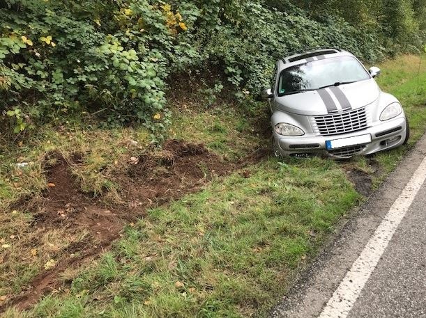 Bereits am Donnerstagmittag befuhr eine 36-jährige Frau mit ihrem PKW die L367, auf der sie in Höhe der Ortschaft Rodenbach das Lenkrad des Wagens verriss, auf der regennassen Fahrbahn über die Gegenfahrspur schleuderte und im angrenzenden Straßengraben zum Liegen kam. Ihr Versuch sich selbst wieder aus dem Graben zu befreien scheiterte an dem rutschigen Gras und an drei von vorstehenden Karosserieteilen aufgeschnittenen Fahrzeugreifen. Es entstand Sachschaden in Höhe von etwa 3000 Euro. Laut Fahrerin habe sie auf Grund eines Ausweichmanövers die Kontrolle über ihr Fahrzeug verloren. Sie sei einer Maus ausgewichen, welche die Straße über-quert habe. Zum Unfallzeitpunkt befand sich kein Verkehrsteilnehmer im Gegenverkehr. Die Unfallverursacherin und die Maus blieben unverletzt.