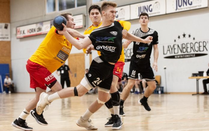 Fünf 19-jährigen, dazu Goalgetter Marco Holstein (20) und Jannik Grunau, mit 24 der „Senior“ in der Startformation, schenkte TuS-Trainer Sebastian Wächter das Vertrauen in diesem wichtigen Spiel gegen einen direkten Konkurrenten im Abstiegskampf. Und sein Vertrauen sollte nicht enttäuscht werden. Denn das Duell der Tabellennachbarn, beide mit vier Pluspunkten auf ihrem Konto, geriet schon nach einer Viertelstunde zu einer einseitigen Angelegenheit. Da hieß es bereits 9:2 für die Gastgeber und die 120 Zuschauer in der Layenberger Sporthalle staunten nicht schlecht, ob der starken Vorstellung des Dansenberger Perspektivteams. Zehn Minuten später war der Vorsprung sogar auf acht Tore angewachsen (12:4, 24.). Bis dahin hatten der dreifache Torschütze Bastian Wilbrandt mit sehenswerten 1-gegen-1-Aktionen und Rückraumshooter Marco Holstein mit fünf Treffern bei sechs Versuchen die Akzente in der Offensive gesetzt. Defensiv ließ die junge TuS-Garde nichts anbrennen und verteidigte hart aber fair. Dazu hatte das Dansenberger Torhütergespann einen Sahnetag erwischt. Ehe Henning Huber zum ersten mal hinter sich greifen musste dauerte es bis zur 7. Minute. In der 1. Halbzeit hielt er zehn von 15 Würfen – eine überragende Quote. Simon Egelhof zeigte Nervenstärke und vereitelte die ersten drei Siebenmeter. Erst beim vierten Versuch musste er sich beim Treffer von Thomas Betz zum 11:4 (22.) geschlagen geben. Dass der TuS trotz des deutlichen Vorsprungs torhungrig blieb, zeigten die letzten beiden Spielminuten vor der Pause. Innerhalb von 100 Sekunden klingelte es vier mal im Gästetor. Den schönsten Treffer in dieser Phase erzielte Max Dettinger. Nach langem Abwurf von Henning Huber pflückte er das Spielgerät unter Bedrängnis mit einer Hand aus der Luft, zog mit drei schnellen Schritten nach innen und versenkte den Gegenstoß sicher zum 14:6. Sehenswert! Je ein Treffer von Tobias Wächter, der sich außerdem als sicherer Siebenmeterschütze präsentierte, sowie Maurice Lamotte sorgten für den auch in der Höhe verdienten Pausenstand von 16:6.