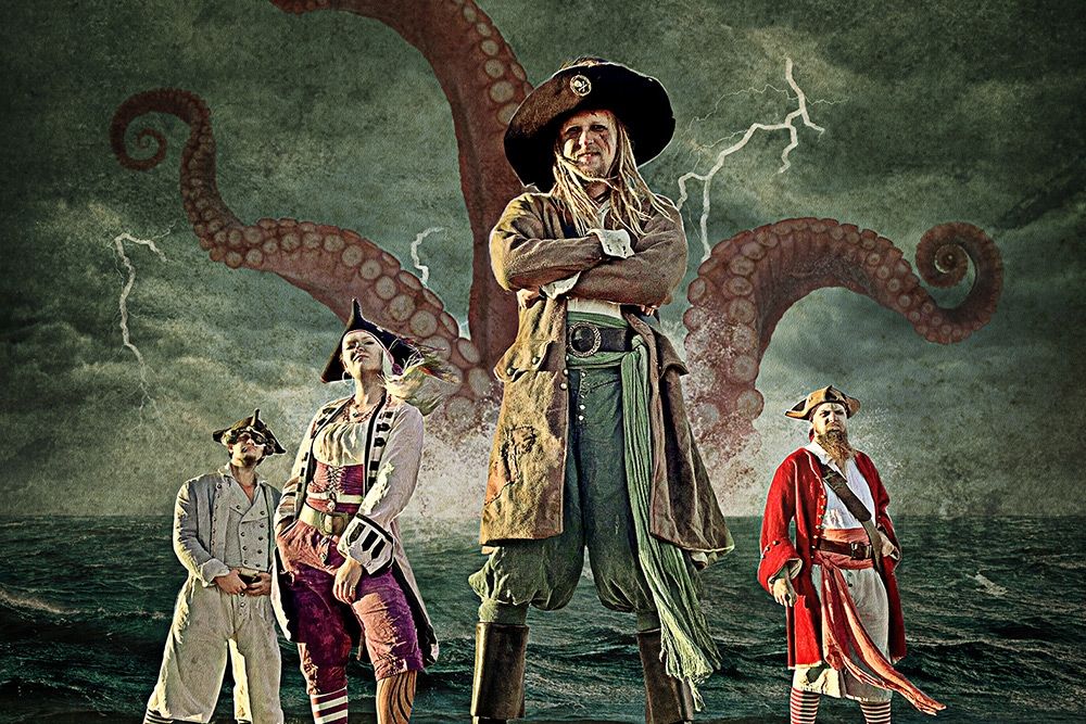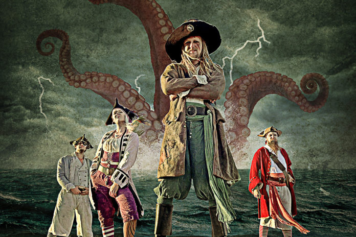 Ich bin blau wie das Meer … breit so wie die Ärsche von den Weibern auf Tortuga … Drastisch-witzige lyrics. Der Bandname spricht auch für sich. Sind alle Geschwister (muss ja toll gewesen sein, als die klein waren ;). Nach Platz 5, in den Charts, mit Tortuga, auf Tour zu ihrer 5. Platte (s. Titel, s.o., VÖ: 30.08.). Summer Breeze, Wacken, Feuertanz, unter anderem. Mittelalter-Instrumentarium. Seemanns-Akkordeon. Div. Schlagwerke. Walzer-Takte. Musik, die Freude macht. Rum en masse. Will Dir ein Kraken an den Kragen / Dann gehst Du besser schnell an Land / Denn in dem Magen von ’nem Kraken / Da lebst Du nicht besonders lang! Zum zweiten Mal in der KAMMGARN – ein veritabler Feier-Abend: Mr. Hurley & die Pulveraffen.