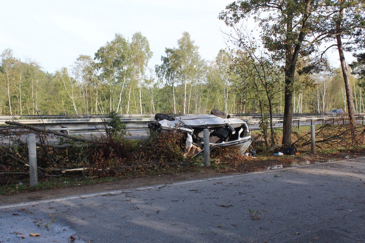 Am Samstagmorgen kam ein 65 Jahre alter Fahrer eines Ford Galaxy in Höhe der Einfahrt zum Autobahnrastplatz „Höllenplacken“ von der Fahrbahn ab und überschlug sich. Aus bislang ungeklärter Ursache kam der Mann, der die A6 in Richtung Kaiserslautern befahren hatte, nach rechts von der Fahrbahn ab und überfuhr die Schutzplankenabsenkung im Einfahrtsbereich des Parkplatzgeländes. Hierdurch wurde das Fahrzeug hochkatapultiert, überschlug sich mindestens einmal und krachte in die dort stehenden Bäume. Auf der Fahrerseite kam es dann zwischen den Bäumen zum Liegen. Der Fahrer, sowie seine 64 Jahre alte Beifahrerin, wurden in dem Auto eingeklemmt und mussten von der Freiwilligen Feuerwehr Ramstein-Miesenbach aus dem Fahrzeug geborgen werden. Aufgrund der Schwere ihrer Verletzungen wurden die Unfallbeteiligten mit Rettungshubschraubern in nahegelegene Krankenhäuser gebracht. Der Gesamtschaden dürfte etwa 10.000.-EUR betragen. Für die Dauer der Rettungsmaßnahmen war die A6 zwischen den Anschlussstellen Ramstein-Miesenbach und Kaiserslautern-Einsiedlerhof gesperrt. Zeugen, die den Verkehrsunfall beobachtet haben, werden gebeten sich unter der Rufnummer 0631 3534-0 mit der Autobahnpolizei Kaiserslautern in Verbindung zu setzen.
