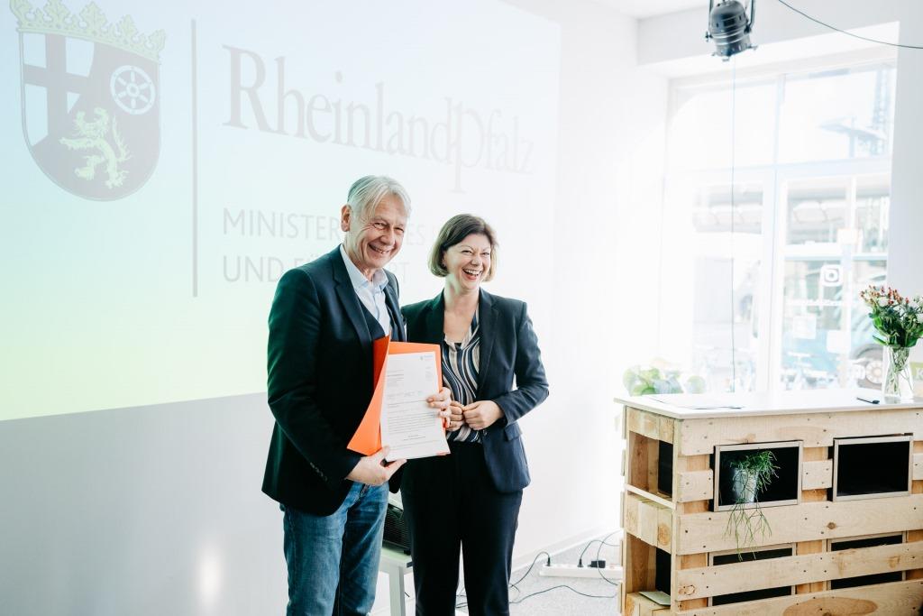 Seit 2017 ist Kaiserslautern „herzlich digitale Stadt“ und stellt auf dem Weg in eine digitale Zukunft Projekte in den Fokus, die den Menschen in den Mittelpunkt stellen. Das Ministerium des Innern und für Sport des Landes Rheinland-Pfalz hat die weitere Förderung für die Jahre 2020 und 2021 zugesagt. Es fließt eine Million Euro an Fördermitteln nach Kaiserslautern. Bei der feierlichen Übergabe am 31. Oktober durch Frau Staatssekretärin Nicole Steingaß an Oberbürgermeister Dr. Klaus Weichel in den Räumlichkeiten der KL.digital nahmen Gäste aus dem Bereich Wissenschaft und Forschung, Politik, Wirtschaft und Kultur teil sowie die Stadtoberhäupter des Interkommunalen Netzwerks Digitale Stadt Andernach, Speyer, Wörth am Rhein und Zweibrücken.