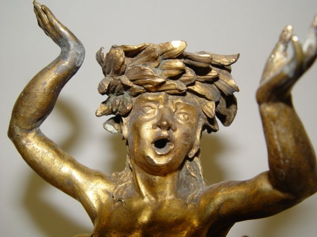 Bu:Aus der ersten Hälfte des 18. Jahrhunderts: kleiner Tischbrunnen aus Bronze und Messing mit Triton, einem Meeresgott der griechischen Mythologie