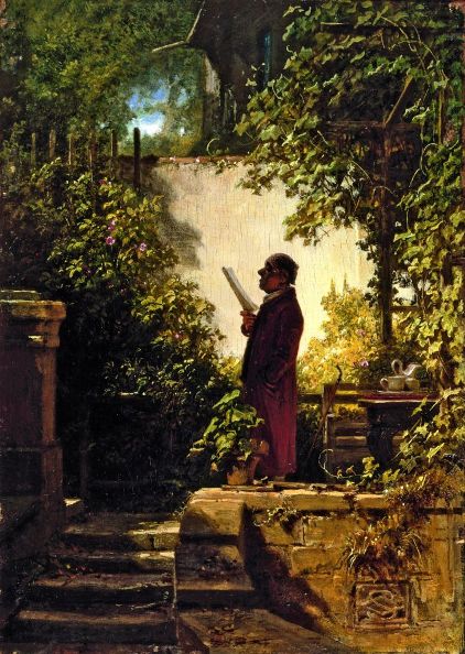 Bu: Äußerst beliebter Maler: Carl Spitzwegs „Zeitungsleser im Hausgärtchen“ von 1868