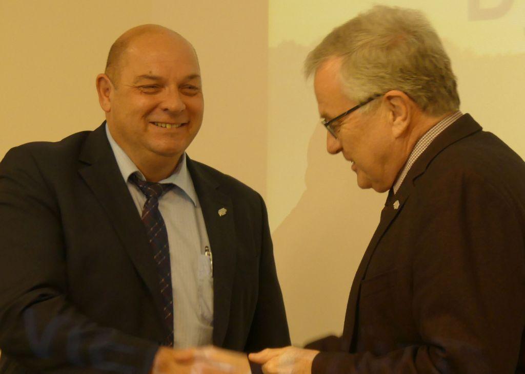 Glücklich, die Leitung der MHK zu übernehmen: Bezirkstagsvorsitzender Theo Wieder (rechts) teilt Steffen Hemmer die Entscheidung der Gremien des Bezirksverbands Pfalz mit