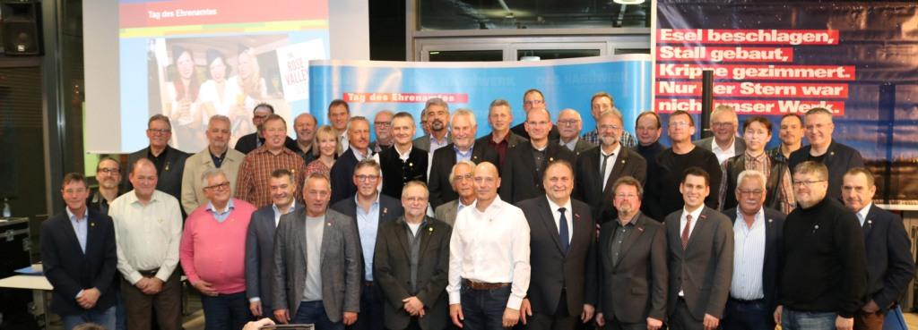 Im Rahmen der Veranstaltung wurden 23 Teilnehmer mit der Ehrennadel in Gold und 15 Teilnehmer mit der Ehrennadel in Silber der Handwerkskammer für ihr langjähriges ehrenamtliches Engagement ausgezeichnet.