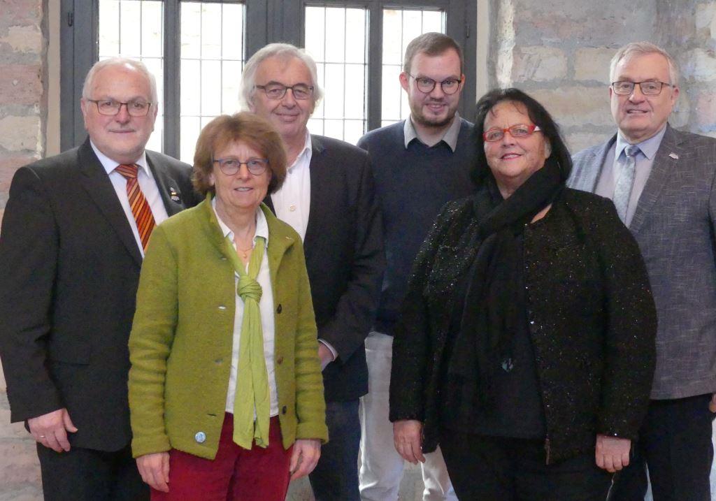 Bu: Die Ausschussvorsitzenden des Bezirkstags Pfalz in seiner Wahlperiode bis 2024 (von links): Manfred Petry, Irmgard Münch-Weinmann, Manfred Geis, Felix Schmidt, Petra Busch und Bezirkstagsvorsitzender Theo Wieder – nicht im Bild: Marcus Klein