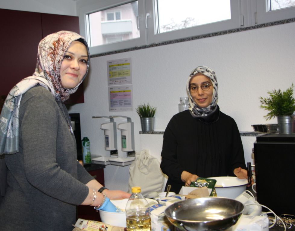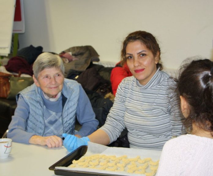 Der Weihnachtsbaum leuchtet und es duftet nach Plätzchen. Während eine ältere Dame zwei Mädchen aus Afghanistan Tipps für traditionelles Pfälzer Spritzgebackenes aus dem Fleischwolf gibt, bereiten zwei Frauen aus der Türkei Gebäck aus ihrer Heimat vor.