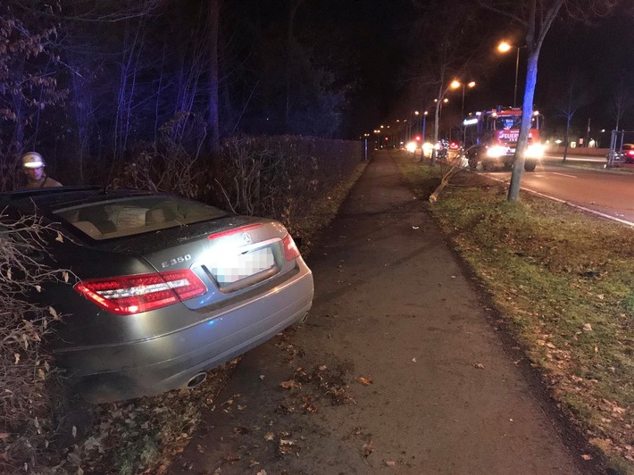 Ein 61-jähriger Autofahrer hat am Mittwochabend in der Mannheimer Straße einen Unfall verursacht. Der Mann fuhr mit seinem Wagen stadteinwärts. In Höhe der Daenner-Kaserne kam er nach rechts von der Straße ab. Sein Auto kollidierte mit einem Baum, der durch den Aufprall umstürzte. Anschließend schoss das Fahrzeug über einen Radweg hinweg und prallte im Grünstreifen gegen einen weiteren Baum. Qualmend und schwer beschädigt kam der Wagen zum Stehen. Eine Polizeistreife des sogenannten Altstadtreviers kam kurze Zeit später an der Unfallstelle vorbei. Die Beamten befreiten den Fahrer aus seinem Wagen. Er war unverletzt. Die Helfer stellten jedoch Alkoholgeruch bei dem 61-Jährigen fest. Offensichtlich war der Mann betrunken. Ein Alkoholtest bestätigte den Verdacht. Das Testgerät zeigte eine Atemalkoholkonzentration von 1,39 Promille an. Dem Fahrer wurde eine Blutprobe entnommen. Vorsorglich brachte der Rettungsdienst den 61-Jährigen ins Krankenhaus. Sein Wagen wurde abgeschleppt. Den Führerschein musste der 61-Jährige abgeben. Um den umgestürzten Baum kümmerte sich die Feuerwehr. |erf
