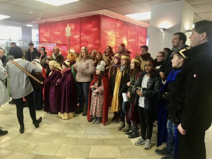 Die Sternsinger der Pfarrei St. Martin zogen in den Kostümen von Caspar, Melchior und Balthasar durch die Kundenhalle und boten schöne Lieder und Gedichte dar, denen sowohl Mitarbeiter als auch Kunden erfreut ihr Gehör schenkten und die alle Zuhörer zum stimmungsfrohen Mitsingen ermunterten. Im Anschluss wurde das Haus mit dem traditionellen Segen bedacht.