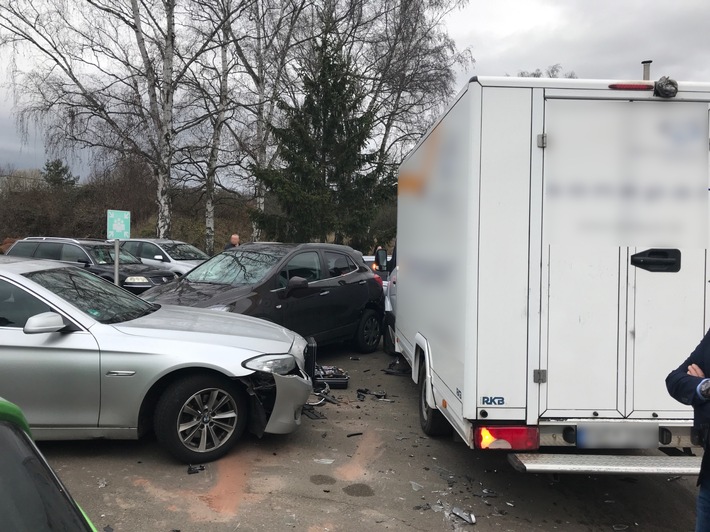 Enkenbach-Alsenborn – Eine Kettenreaktion löste am Freitagmittag ein Unfall in der Donnersbergstraße aus. Am Ende waren sieben Fahrzeuge und ein Werbeschild beschädigt. Der Sachschaden dürfte deutlich über 100.000 Euro liegen. Der 37-jährige Unfallverursacher hatte sich verschluckt. Er kam vorsorglich ins Krankenhaus.