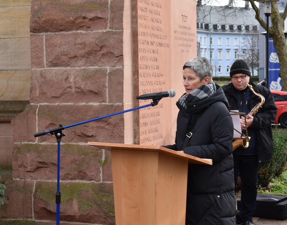 Die Feier wurde mitgestaltet von Schülerinnen und Schülern des Albert-Schweitzer-Gymnasiums, der BBS I, des Hohenstaufengymnasiums und der Lina-Pfaff-Realschule plus. Unter den Anwesenden waren darüber hinaus Schülerinnen und Schüler der Fritz-Walter-Schule, des Heinrich-Heine-Gymnasiums, des St.-Franziskus-Gymnasiums und Realschule sowie des Gymnasiums am Rittersberg. Außer der Bürgermeisterin sprachen auch Christian Decker vom Institut für Pfälzische Geschichte und Volkskunde, Larissa Janzewitsch und Mikhail Kats von der Jüdischen Kultusgemeinde der Rheinpfalz sowie Pfarrer Andreas Keller. Für die musikalische Umrahmung sorgte das Saxophontrio der Emmerich-Smola-Musikschule.