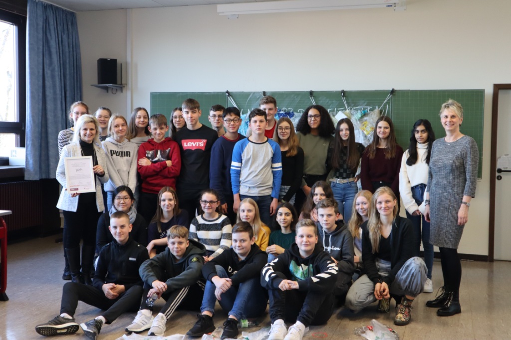 Diese Sonderaufführung im Klassenzimmer hat die ehemalige 7b des Sickingen-Gymnasiums im Schuljahr 2018/2019 beim Wettbewerb „push – Pfalztheater und Schule hautnah“ gewonnen. Claudia Weber, Marketingmitarbeiterin der Kreissparkasse Kaiserslautern, überreichte die Auszeichnung. Deutschlehrerin Nina Welsch hatte den Anstoß gegeben, „mehr nicht!“, wie sie heute sagt. „Die Schüler fanden es gerade toll, dass sie keinerlei Einschränkung ihrer Kreativität und bei der Umsetzung hatten“, erinnnert sich Welsch. Mit dem Wettbewerbsbeitrag „Fünf Beiträge“, der Videos, Bastelarbeiten, Leinwandplakatierung und anderes mehr umfasste, konnten die Schüler die Jury überzeugen. Neben dieser knapp einstündigen Vorstellung in ihrem Klassenzimmer kommen die heute 13- und 14-Jährigen in den Genuss einer Vorstellung von „Minna von Barnhelm oder Das Soldaten¬glück“ im Großen Haus des Pfalztheaters, inklusive Bustransfer. Der DS-Kurs der (heutigen) Klassenstufe 9 der IGS Am Nanstein in Landstuhl mit der Lehrerin Frau Rau hat mit dem Wettbewerbsbeitrag „Wir müssen etwas tun!“ ebenfalls eine Vorstellung des von Autor Thomas Arzt geschriebenen Stückes gewonnen, die bereits im Dezember in der IGS Am Nanstein stattfand.