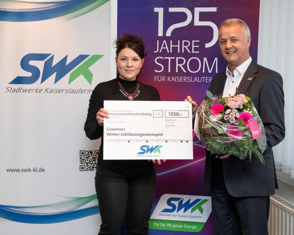 Markus Vollmer, Vorstandsmitglied der SWK Stadtwerke Kaiserslautern Versorgungs-AG, gratulierte der Gewinnerin und erklärte: „SWK ist ein modernes, innovatives Energieversorgungsunternehmen und dazu gehört auch, dass wir unseren Kunden zeitgemäße Formen der Kommunikation wie die SWK-App, unser Kundenportal oder die Möglichkeit der Online-Kommunikation anbieten.“