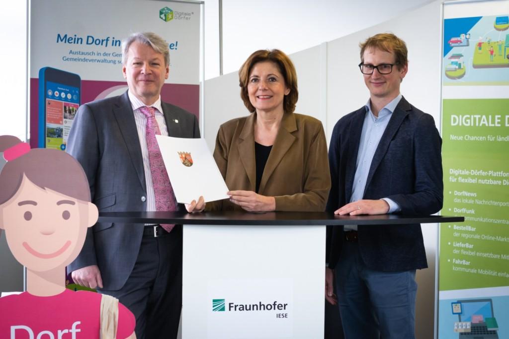 Am Donnerstag (13.02.2020) erhielt das Fraunhofer IESE den Förderbescheid des rheinland-pfälzischen Ministeriums des Innern und für Sport und damit das offizielle Go, an Technologien und Diensten für ländliche Regionen weiterzuarbeiten. Ministerpräsidentin Malu Dreyer übergab den Bescheid im Rahmen der Veranstaltung »nachhaltig digital unterwegs …« im DFKI, bei der sich Interessierte über neue Möglichkeiten informieren und austauschen konnten, wie sich durch den Einsatz von Technologie und Innovation Nachhaltigkeit in allen Lebensbereichen erzielen lässt.