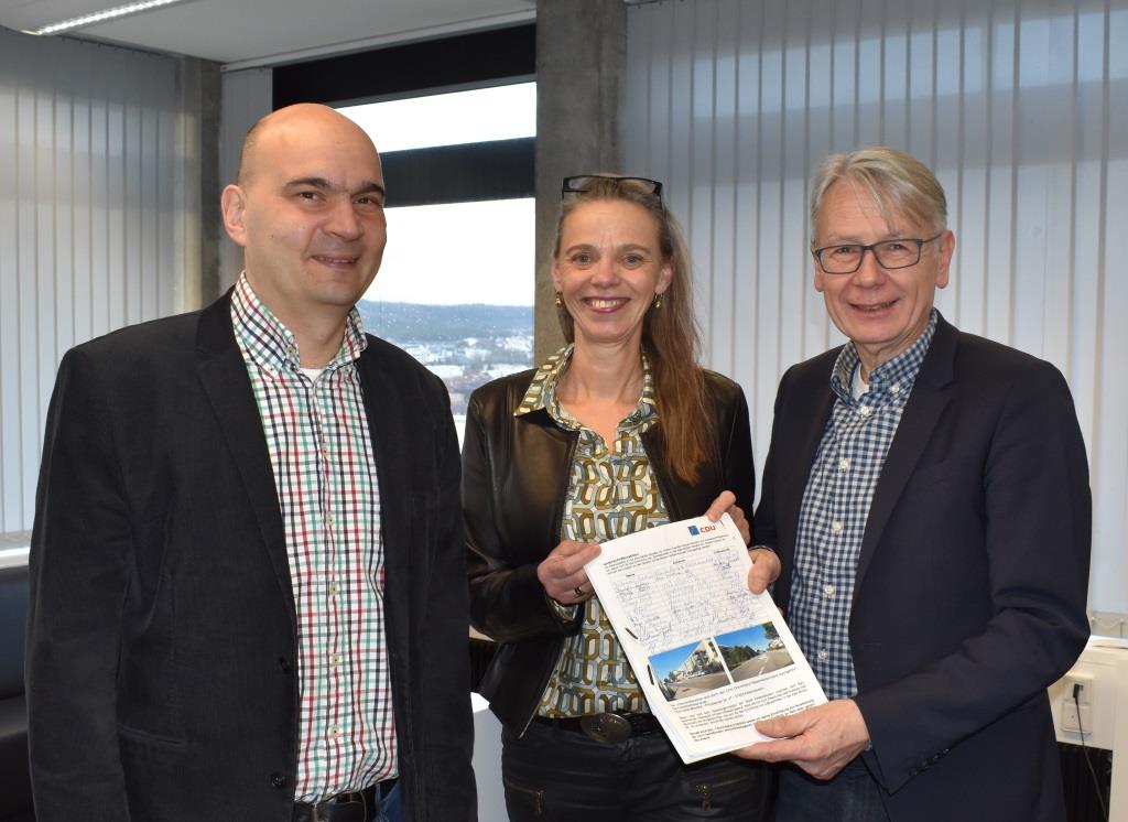 Die Vorsitzende des CDU-Ortsverbands Nord / Kaiserberg, Bärbel Sehy, und CDU-Ratsmitglied Manfred Schulz haben Oberbürgermeister Klaus Weichel heute Morgen eine Liste mit 500 Unterschriften überreicht. Mit ihrer Unterschrift setzen sich die Unterzeichnerinnen und Unterzeichner für die Einrichtung zweier Zebrastreifen in der Alex-Müller-Straße (Höhe Theodor-Heuss-Straße und Kursana-Pflegeheim) ein. Das Stadtoberhaupt sicherte zu, die Angelegenheit umgehend prüfen zu lassen.