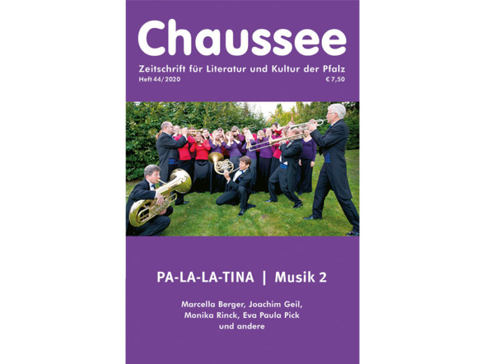 „Pa-la-la-tina“ heißt die Winter-Ausgabe der „Chaussee. Zeitschrift für Literatur und Kultur der Pfalz“ und nimmt noch einmal die Musik in den Fokus, nachdem vor fast zwei Jahren zahlreiche Beiträge in der Redaktion eingegangen waren. Etliche Texte beschäftigen sich diesmal mit Vokalmusik, sei es literarisch oder sachbezogen. Unter anderem Joachim Geil, Monika Rinck und Marcella Berger haben interessante Erstveröffentlichungen beigesteuert. Porträtiert wird auch der gebürtige Ludwigshafener und in Mannheim lebende politische Liedermacher Bernd Köhler. Wer Lust auf einen Höreindruck hat, kann auf der Website www.bv-pfalz.de/chaussee ein Lied vom Hambacher Fest-Teilnehmer Johannes Fitz herunterladen.