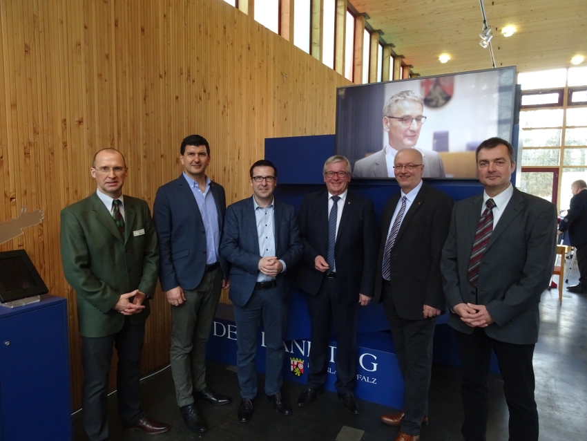 Am 1. März, zum Saisonauftakt 2020 im Johanniskreuzer Infozentrum, eröffneten Landtagsvizepräsident Hans-Josef Bracht und Stefan Asam, Direktor der Zentralstelle der Forstverwaltung in Neustadt/Wstr., die Wanderausstellung „Der Landtag von Rheinland-Pfalz“. Der Einladung zu diesem Termin nach Johanniskreuz folgten rund 40 Gäste von in der Pfalz ansässigen Behörden, Mitglieder des Bezirksverbands Pfalz, Vertreter*innen regionaler Kommunen sowie Repräsentanten*innen der Wissenschaft und der Zivilgesellschaft. Unter den Besuchern befanden sich auch die drei Landtagsabgeordneten Thomas Wansch (SPD), Daniel Schäffner (SPD) und Marcus Klein (CDU). Die Veranstaltung wurde von Stephanie Wunsch, Harfe, musikalisch umrahmt.