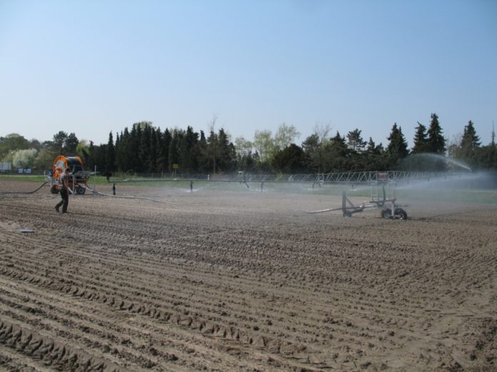 Bu: Klimawandel trifft jeden: Beregnung des LUFA-Versuchsfeldes auf dem Rinkenbergerhof