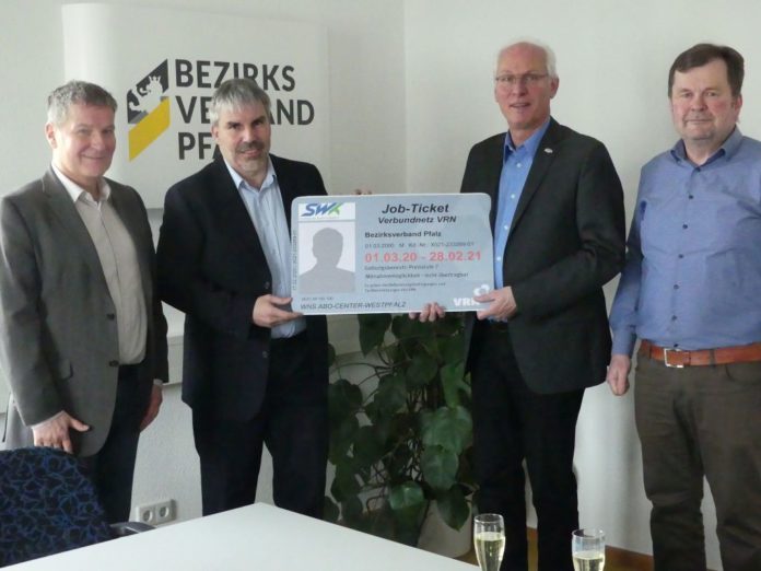 Als erstes großes Unternehmen nimmt der Bezirksverband Pfalz am neuen Job-Ticket-Modell teil, das der Verkehrsverbund Rhein-Neckar (VRN) seit diesem Jahr anbietet. Die Kosten sind nun nicht mehr von der Gesamtzahl der Beschäftigten eines Unternehmens abhängig, sondern nur noch von der Anzahl der Job-Ticket-Inhaber. Der Arbeitgeber zahlt künftig die Differenz zwischen dem Rhein-Neckar-Ticket und dem Job-Ticket. Dadurch sparen die Arbeitnehmerinnen und -nehmer des Bezirksverbands Pfalz monatlich rund 45 Euro beim Kauf ihrer Netzkarte. Das neue Job-Ticket, das das bisherige ergänzt, soll es noch mehr Arbeitnehmern ermöglichen, kostengünstig und umweltverträglich die individuellen und flexiblen Möglichkeiten des öffentlichen Personen-Nahverkehrs im VRN-Gebiet zu nutzen.