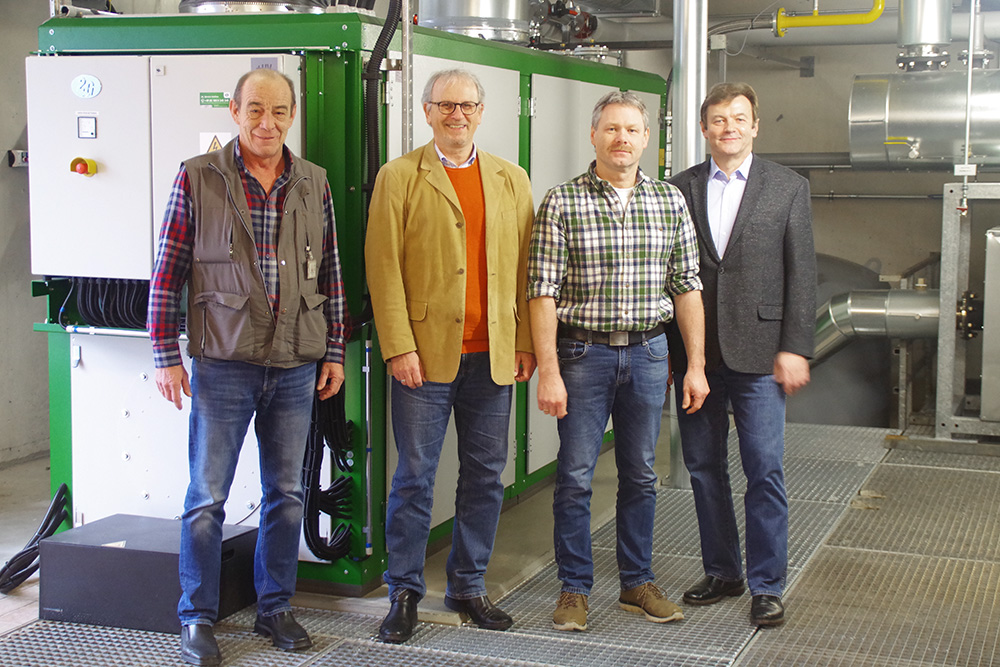 Bildunterschrift: Blockheizkraftwerk I: Von links: Karl-Werner Jacob (Energiemanagementbeauftragter Westpfalz-Klinikum Kusel), Friedrich Beck (Stadtwerke Kusel), Richard Schmidt (Technik Westpfalz-Klinikum Kusel), Reiner Beck (Regionaldirektor Westpfalz-Klinikum Kusel)