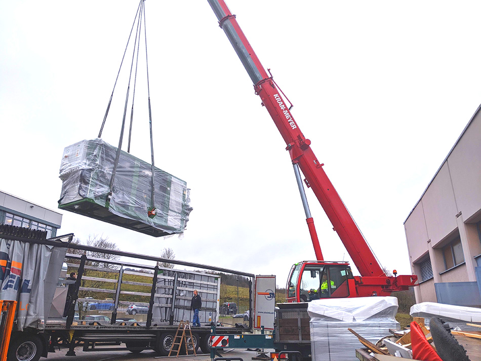 Blockheizkraftwerk II: Anlieferung des Blockheizkraftwerk