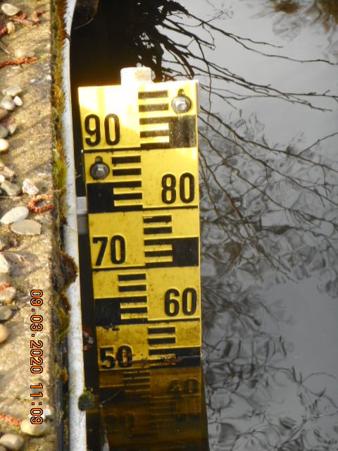 Vor zwei Wochen erst fand die Bürgerinformationsveranstaltung im Rathaus zum letztjährigen Niedrigwasserstand im Gelterswoog statt. Wo im letzten Sommer noch über 70 Zentimeter Wasser an der Messstelle fehlten, konnte am Montag, 9. März, festgestellt werden: der Gelterswoog ist dank der vielen Niederschläge der letzten Wochen wieder komplett vollgelaufen. „Der Messpegel zeigt den maximalen Wasserstand von 53 Zentimetern an. Alles was darüber hinaus an Wasser ankommt, fließt in den Hohenecker Mühlbach ab“, erläutert Beigeordneter und Umweltdezernent Peter Kiefer. Die aktuelle Wetterprognose, die weitere Regenfälle für die kommenden Tage vorhersagt, lässt hoffen, dass der Gelterswoog in diesem Jahr ausreichend Wasser für einen ungestört Freizeit-, Sport- und Badebetrieb führen wird. „Nichtsdestotrotz brauchen wir mittelfristig eine tragfähige Lösung für das Gewässer. Der Klimawandel ist mehr und mehr spürbar, weshalb eine künstliche Wasserspeisung des Gelterswoogs auf Dauer notwendig sein wird“, prophezeit der Beigeordnete.