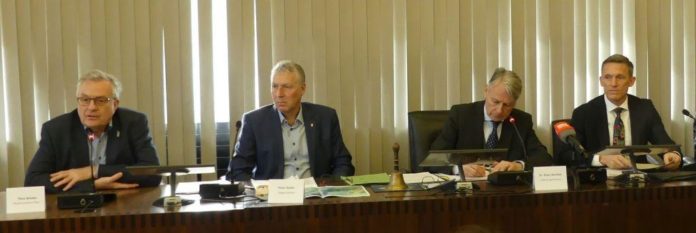 Bu: Geben Maßnahmen für Stadt Kaiserslautern und Umland bekannt (von links): Bezirkstagsvorsitzender Theo Wieder, Beigeordneter Peter Kiefer, Oberbürgermeister Dr. Klaus Weichel und Landrat Ralf Leßmeister