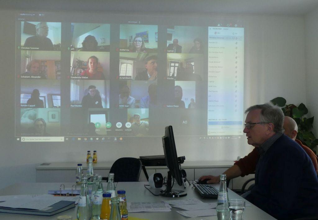 Bu: Videokonferenz: Bezirkstagsvorsitzender Theo Wieder (rechts) im Online-Gespräch mit den Einrichtungsleitungen im Bezirksverband Pfalz