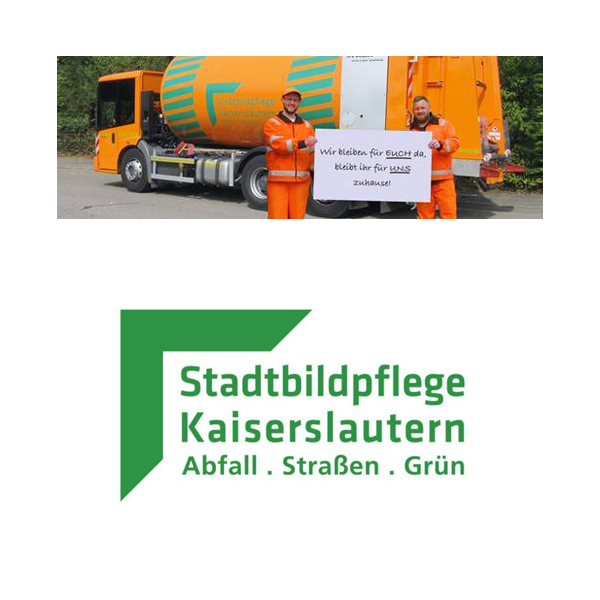 Die Leerungen der Müllbehälter findet vorerst weiterhin statt. Auch die Leistungen der Straßenreinigung werden soweit möglich aufrechterhalten. Um dies auch in Zukunft zu gewährleisten, ruft die Stadtbildpflege Kaiserslautern jetzt zu Geschlossenheit und Verantwortungsbewusstsein in der Bevölkerung auf: “Wir bleiben für Euch da, bleibt Ihr für uns zuhause!“, lautet der Aufruf an die Bürgerinnen und Bürger in Kaiserslautern.