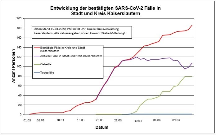 Heute wurden 9 weitere positive Testergebnisse gemeldet. Damit wurden bislang insgesamt 186 Personen im Zuständigkeitsbereich des Gesundheitsamtes der Kreisverwaltung Kaiserslautern positiv auf das Coronavirus getestet. Davon gelten jedoch mittlerweile 79 Personen als geheilt.