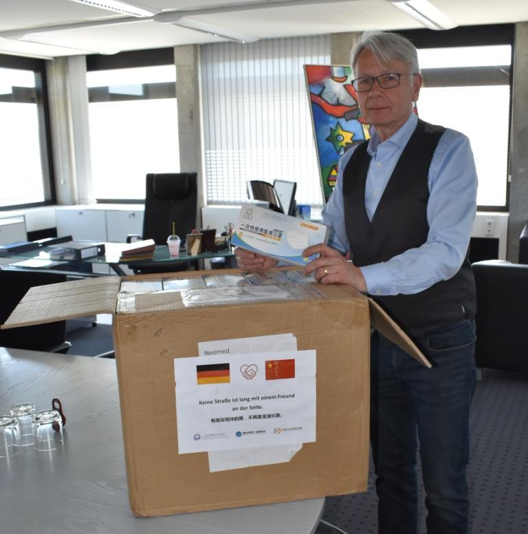 Die 7-Millionen-Metropole Foshan, wo die Wirtschaftsförderung von Stadt und Landkreis Kaiserslautern (WFK) seit 2019 eine Repräsentanz unterhält, hat den beiden Gebietskörperschaften jeweils 5000 OP-Masken gespendet. Die Masken trafen heute Morgen im Rathaus ein, wo sie von Oberbürgermeister Klaus Weichel persönlich entgegengenommen wurden. „Wir können diese Krise nur meistern, wenn wir weltweit an einem Strang ziehen und uns gegenseitig unterstützen. Ich danke unseren chinesischen Freunden vielmals für die Spende!“, erklärte das Stadtoberhaupt. Die Masken sollen nun in unterschiedlichen Bereichen der Verwaltung zum Einsatz kommen.