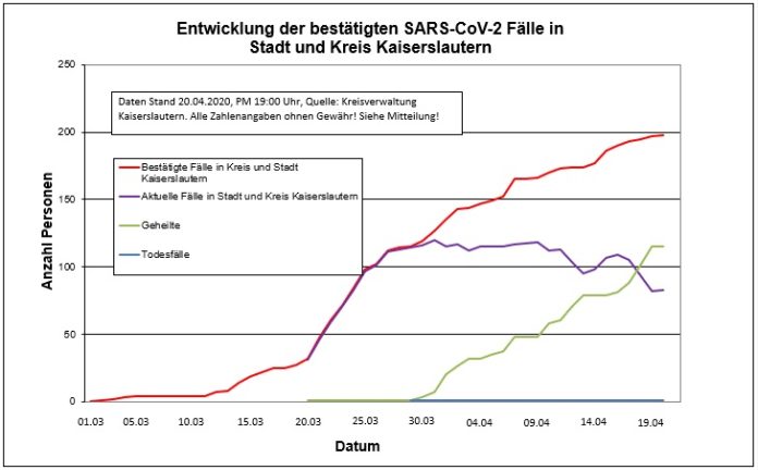 Damit liegt die Zahl der Indexfälle in Stadt und Landkreis Kaiserslautern aktuell bei 198.